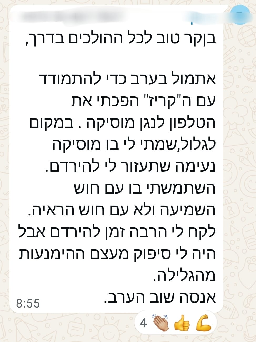 מה שהתחיל כאתגר זמני הפך עבורנו לדרך חיים. התחלנו “להתחיל להפסיק”, ואז בחרנו גם “להמשיך להפסיק” — וכך, בתקופות התנזרות שהלכו והתארכו, הגענו למקום של שימוש מודע ומבוקר.